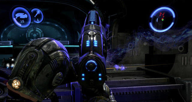Una delle cose che più volevo capire di questo gioco era il suo gameplay, i filmati promozionali sembravano eccezionali, Will vola ovunque, ruba astronavi e combatte in alcuni livelli progettati in verticale, fantastico. Tutto quello che si vedeva nei filmati, oggi, funziona? Le meccaniche di gioco ricordano molto da vicino il famoso Gears of War, Wanted o il recente Avatar…insomma, prendete un gioco action dove ci si possa nascondere dietro un muro, cambiategli l’ambientazione, aggiungete un tizio con un jet pack sulla schiena e avrete questo Dark Void. E’ bello sapere che però si può anche volare e che quindi potremo usare l’ambiente circostante come una sorta di via di fuga (sempre che non siamo al chiuso) o come una marcia in più per gli scontri – Will è capace anche di planare, quindi sarà più facile colpire i bersagli a terra. Purtroppo, la brutta sensazione che si nota fra gli scontri in volo e quelli a terra è una facilità estrema per i secondi e una strana difficoltà per i primi: quando penserete di aver colpito qualcosa (con le armi imbracciate o con la mitraglietta dello stesso jet pack), al 90% delle volte, vi sbagliate e il tipo davanti a voi è ancora vivo. Negli scontri in verticale invece, il divertimento del “vertical cover system” dura relativamente poco, e dopo mezzo gioco a sparare coperti, a saltare da un punto all’altro volando e a buttare giù qualche povero Robot, tutto sembrerà meno emozionante. Il fattore negativo è dato dal fatto che negli scontri in verticale, si perde il senso della vera altezza, sembrerà insomma che gli schemi (anche se in aria), siano comunque giocati in linea retta.