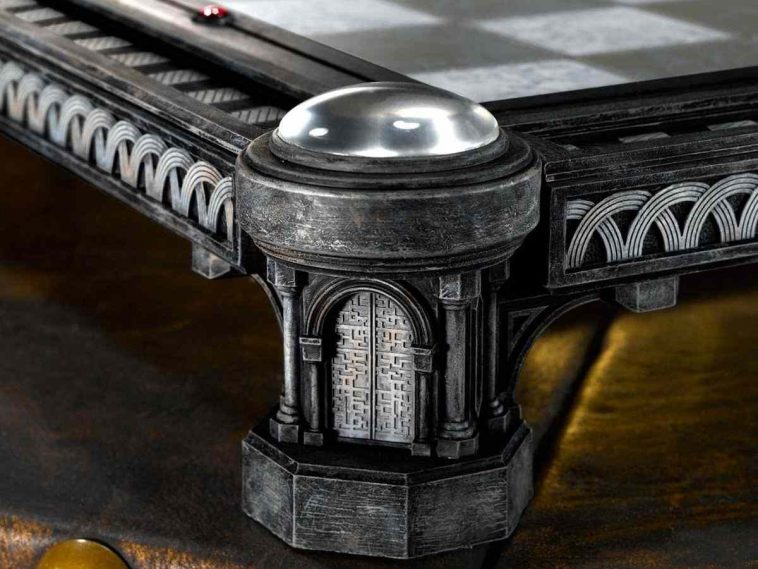 I 32 pezzi, chiaramente, rappresentano i pezzi classici degli scacchi, ma il loro design è identico a quello che possiamo vedere all’interno dei film: ogni pezzo, infatti, è realizzato nei minimi dettagli partendo dai semplici pedoni fino ad arrivare al re e alla regina che sono perfettamente identici a quelli visti nel film.