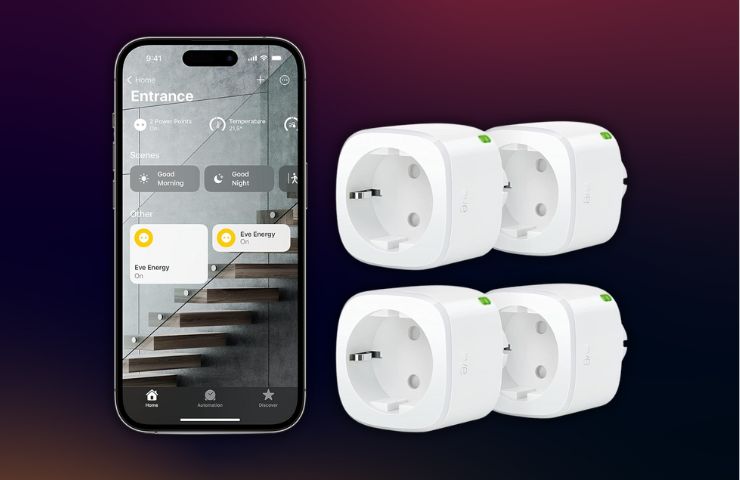Questo set completo comprende 4 prese di corrente che è possibile inserire all’interno delle prese a muro in giro per casa come fossero degli adattatori: in questo modo è possibile collegare elettrodomestici e altri dispositivi elettronici direttamente a queste prese intelligenti di Eve Energy per avere accesso a una serie di vantaggi sia in termini economici che di comodità.