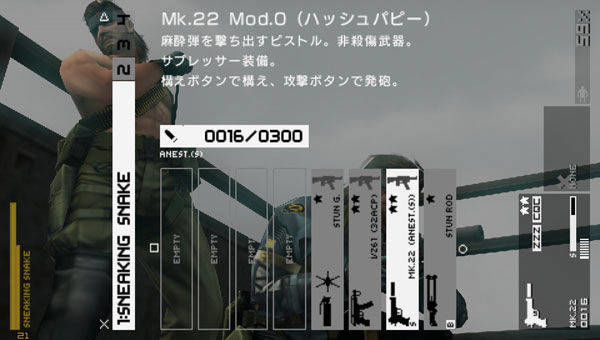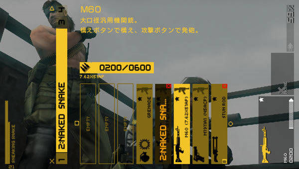 L’avvio del gioco richiederà un po’ di tempo per permettere al sistema di configurare al meglio i settaggi e al giocatore di scegliere la tipologia del sistema di controllo e soprattutto l’installazione o meno di dati all’interno della memory stick (saranno presente due pacchetti, uno base di circa 300MB ed un secondo completo di circa 800). L’installazione, non obbligatoria di uno di questi due pacchetti, diminuirà notevolmente i caricamenti tra un obiettivo e l’altro ed installerà le tracce audio così da fornire alle comunicazioni radio non solo i testi a schermi, ma anche l’audio vero e proprio di chi parla e quello di Snake che risponderà. Tornando al sistema di controllo, nonostante l’assenza di due dorsali e del secondo analogico su PSP, gli sviluppatori hanno ideato la gestione al meglio fornendo al giocatore tre settaggi di base definiti “Shooter”, “Azione” e “Cacciatore”. Il primo sistema riprende la configurazione dei comandi di MGS4 assegnando però alla croce dei pulsanti (Triangolo, Quadrato, Croce e Cerchio) la gestione dei movimenti della telecamera. Il settaggio “Azione” sposta la gestione della telecamera invece all’analogico e rispecchia il sistema di comandi di MGS: Portable Ops. Il settaggio “Cacciatore” infine offre una gestione dei comandi simili a quella di Monster Hunter Freedom, con la gestione della telecamera lasciata alla croce dei pulsanti – ogni settaggio comunque resta poi personalizzabile dal giocatore in ogni momento della partita.