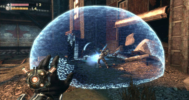 Nel gioco avremo modo di manipolare gli eventi spazio temporali per rimettere a posto delle zone invecchiate dello schema come riportare in vita vecchi ponti compromessi dal tempo e vecchie scatole di munizioni logorate dal passare delle stagioni. Potremo uccidere un soldato accelerandone il processo di invecchiamento o trasformarlo semplicemente in un ricombinato (vi ricorda nulla sto termine? Si, sono gli stessi di Bioshock), ancora, potremo creare una sorta di bolla temporale in cui il tempo si ferma totalmente. Potremo andare a interagire anche con dei veri e propri passaggi spazio dimensionali che si creano in giro per gli schemi. Tutte cose molto belle ma assolutamente pre-programmate dai Raven. In verità, la spiegazione al fatto che possa far tornare in vita una parte di un ponte anziché quella a pochi passi di distanza ce la spiegano quando prenderemo il CMT (il congegno manipolatore): ovvero, l’influenza del potere avviene solamente con degli elementi irradiati con l’E99 ma mi fa davvero strano capire come mai all’interno delle stanze gioco, alcuni elementi sono irradiati e altri no, visto che alla base del gioco si parla di una enorme esplosione di E99 che ha coinvolto tutta l’isola. Noi ci facciamo domande ma sappiamo già la risposta: è tutto pre-programmato per farci vivere una esperienza lineare all’inverosimile dall’inizio alla fine.