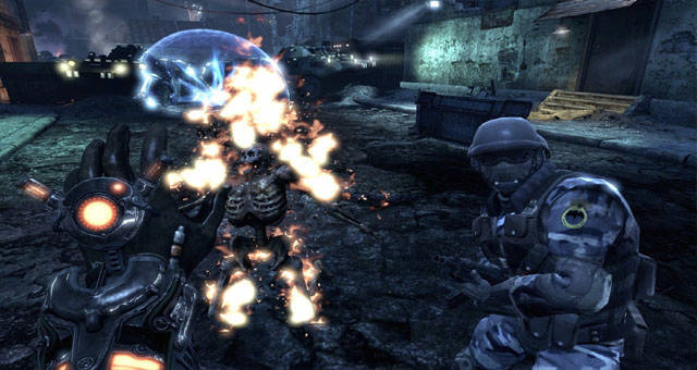 Riguardo ai mostri invece, devo fare una piccola precisazione per l’intelligenza artificiale. Dopo tanti FPS, in Singularity vedo finalmente un comportamento diverso da creatura a creatura, cosi come da mostri a soldati speciali. I primi tenderanno a essere più feroci e attenti mentre i soldati, faranno leva sul gruppo di fuoco e tenderanno a coprirsi con i ripari (che possiamo andare a corrodere) circostanti.