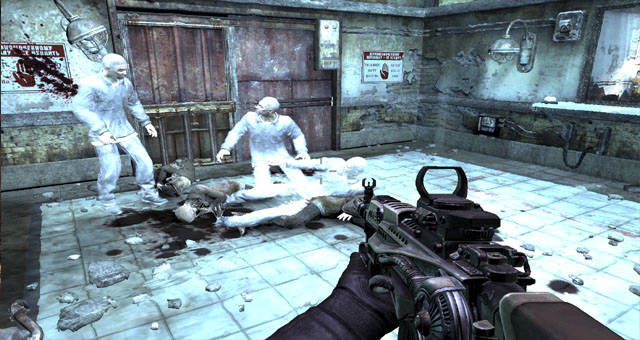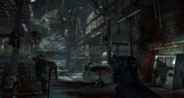 Oltre alla parte puramente fantascientifica, Singularity ha il pregio di essere in tutto e per tutto un titolo fortemente legato alla mentalità horror. Lo dicono le sue atmosfere tetre (vedere le immagini qui in torno), lo dicono i mostri scabrosi e sanguigni e lo dice lo stesso orrore, sociale o meno, del soggetto alla base del gioco. I russi scoprono un nuovo elemento in natura, l’E99 che ha parecchie buone capacità ma che come sempre accade, vengono usati per fini maligni. In un laboratorio super segreto situato su un isola dal nome di Katorga 12 (l’area 51 russa), un esperimento andato male, distruggerà non solo l’isola in se stessa ma andrà a corrodere anche lo stesso spazio tempo degli eventi circostanti. L’E99 ha difatti la capacità di mutare il tempo e può essere usato a favore o sfavore per corrodere o ringiovanire gli elementi circostanti. Il gameplay di Singularity si basa principalmente su questo, sul gestire un congegno in grado di assorbire E99 e sfruttarlo per manipolare il tempo e lo spazio. Oltre a questo, avremo il solito FPS in grado di regalare parecchie emozioni a discapito di una impostazione del tutto classica per gli scontri a fuoco…insomma, prima si uccide tutto ciò che si muove a schermo e poi si fanno domande.