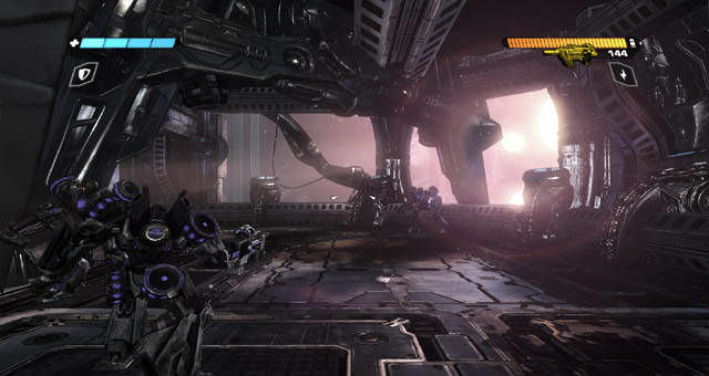 Oltre alla bella storia principale, sorprende ancora di più la grafica, dove per l’ennesima volta viene usato l’Unreal Engine. Metto subito in chiaro le cose, finalmente ma sarà anche per merito del soggetto, riesco a vedere una ricerca grafica eccellente. Tutto quello che ci circonda negli schemi è animato e impreziosito da mille particolari meccanici che accrescono ulteriormente il mondo di Cybertron. Ogni piccolo tassello, ogni vite, ogni tubatura, ogni meccanismo e studiato alla perfezione per amalgamarsi all’interno di alcuni schemi davvero grandi per dimensione e spettacolari da vedere. Certo, manca qualche senso di umanità che magari si può riscontrare in altri titoli ma stiamo parlando di un mondo totalmente meccanico quindi è giusto che ci sia una scelta più fredda per alcune texture o per alcuni paesaggi. In alcuni schemi ad esempio, troviamo piante o cascate di dati, resi alla perfezioni sia nella modellazione generale che per quanto riguarda gli effetti grafici. Praticamente perfetta anche la trasformazione dei personaggi da soldati a macchine, vedremo ogni parte del corpo che si ritira, si piega e assume la forma secondaria con una fluidità unica. Fluidità che si riscontra anche nei caricamenti pressoché pari allo zero fra uno schema e l’altro. Fluidità negli scontri a fuoco anche in presenza di una decina e più di nemici e per ultimo, fluidità nel comparto tecnico che mostra i muscoli senza troppe necessità hardware: con un doppio processore, scheda video da 512MB e 2GB di ram, si giocherà alla perfezione.