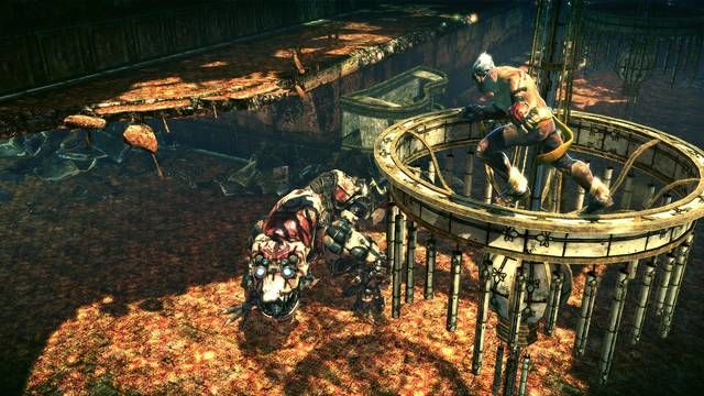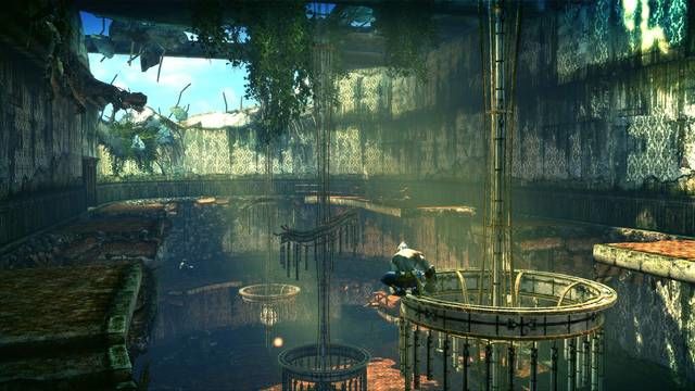 Tutte le abilità connesse alle armi di Monkey, quindi tutto ciò che non è una mera questione di capacità fisica, può essere migliorata raccogliendo le sfere rosse di cui il mondo di gioco è pieno e che ogni nemico battuto lascia sul campo. Grazie all’interazione con Trip, possiamo sfruttare queste sfere come moneta per migliorare la quantità di munizioni da portare, la potenza dei colpi o dello scudo ed altro ancora. Oltre a questo le interazioni tra Trip e Monkey sono continue, l’uomo può infatti portare sempre a spalla la ragazza o ordinarle di proseguire, fermarsi e fungere da diversivo per aggirare un nemico o farsi curare. Allo stesso modo Trip ha un controllo su Monkey, non potremo infatti allontanarci troppo da lei o subiremo dei danni a causa del diadema che, oltre ad essere un collare, funge anche da sistema per permettere a Trip di far vedere a Monkey dettagli sul paesaggio che per noi risulta essere l’HUD. Ben presto poi scopriremo la versione Ninja Theory della famigerata nuvoletta che permetteva a Goku in Dragon Ball di viaggiare un po’ ovunque. Nel gioco questa nuvola è in realtà un campo magnetico in grado di far viaggiare Monkey a mezzo metro dal suolo, sia esso acqua o terra, e solo queste sono le vere fasi di gioco in cui Monkey e Trip saranno divisi visto che sulla nuvola può viaggiare solo Monkey.