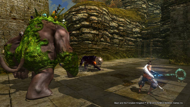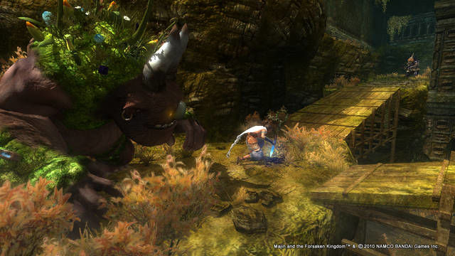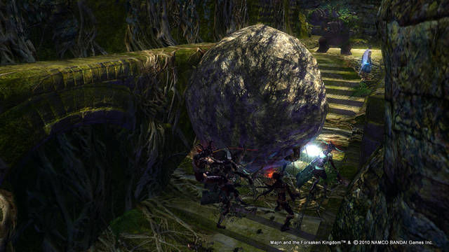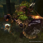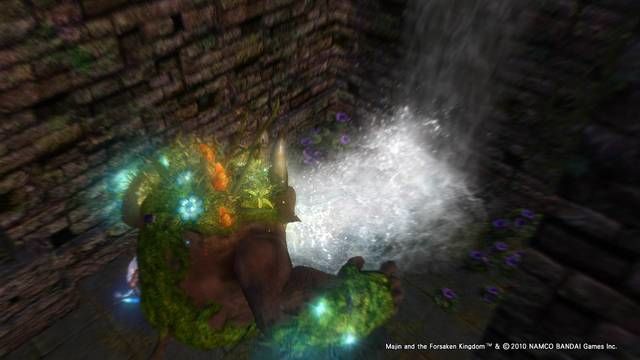 Il mondo che ruota attorno all’avventura di Majn è un perfetto connubio fra la migliore delle favole giapponesi e i capolavori animati del maestro Miyasaki. Lo stile generale adottato dai ragazzi di Game Republic è senza ombra di dubbio uno dei più belli e immaginari di questa fine stagione. Dimenticatevi dunque giochi targati tripla A che hanno fatto un sacco di vendite, qui non siamo dalle parti del commerciale ma da quelle del genere di nicchia: il gioco in questione è uno di quelli che ci si porta dentro al cuore prima durante e dopo averlo finito. Questo lo si denota dall’impostazione di approccio che Majin ha nei confronti della collaborazione sempre costante di uomo (Tepeu) e mostro (Majin). Dai combattimenti alla soluzione degli enigmi, bisogna lavorare in coppia: forza bruta per il mostro e agilità per Tapeu ne fanno uno dei migliori giochi in cui si controllano due personaggi in totale simbiosi. D’altra parte, ad esempio, sappiate che Tapeu non può uccidere le creature senza l’ausilio del suo Majin (dotato anche del potere del fuoco, del vento e del fulmine), cosi come quest’ultimo non potrebbe superare alcune stanze senza l’intelligenza e l’agilità del piccolo uomo nell’infilarsi all’interno di cunicoli dove spesso sono celate leve o pulsanti.