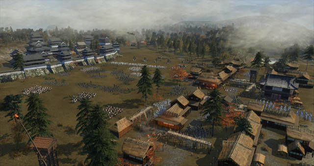 Taglio subito la testa la toro, la grafica di Shogun 2 è sontuosa, maestosa e curatissima sotto ogni punto di vista: la ricostruzione di un Giappone feudale davvero vivo e pieno di colori, lascia davvero senza fiato. Certo, avvicinando la telecamera sul campo di battaglia, noterete come le unità del medesimo gruppo sono sostanzialmente tutte uguali ma c’è da dire che anche grazie all’uso del cambio delle stagioni (che influisce notevolmente anche sul gameplay), le armature vengono logorate dal tempo cosi come gli ambienti subiscono le chiare mutazioni del cambio stagionale. Tornando a bomba sulla gestione delle unità, posso inoltre dirvi che durante gli scontri, si muoveranno centinaia di soldati sia a piedi che a cavallo e che realizzeranno delle sequenze di scontri davvero esaltanti: avvicinarsi con la telecamera durante una avanzata di cavalieri o mentre le truppe scalano le fortezze, lascerà davvero senza parole anche il giocatore più smaliziato. Gli effetti di luce sono eccellenti cosi come quelli particellari legati al fumo o al fuoco. Altra cosa che stupisce è il piano di battaglia, ricco di dettagli come alberi, fiori e fili d’erba.