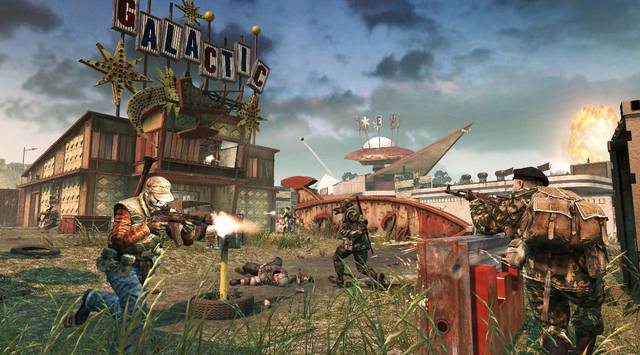 Drive-In è una mappa piccola che prende spunto a piene mani da Nuketown, una delle mappe di maggior successo nel multiplayer di Black Ops. A differenza di Nuketown però la mappa offre un’ampia area aperta centrale e luoghi coperti alle estremità dove la lotta muta obbligatoriamente da mitragliatori a media distanza a combattimento corpo a corpo con il coltello tra i denti. Come per Nuketown a vincere saranno i giocatori corazzati e armati al meglio per media e breve distanza.