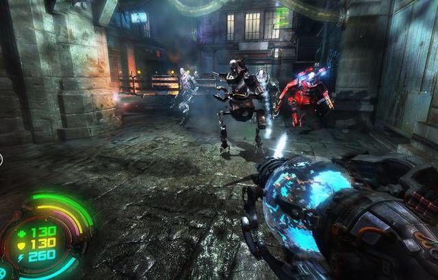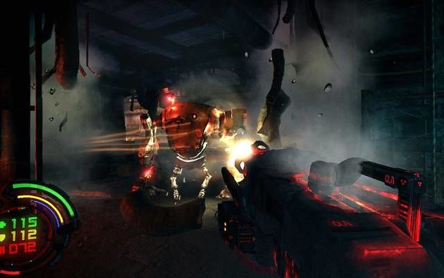 Hard Reset è un titolo vecchio stampo puntato quasi completamente su combattimenti frenetici con una valangata di nemici per volta. Formule simili, le avevamo potute apprezzare giocando a Painkiller e al grande Sarious Sam (in arrivo il terzo capitolo della serie), titolo da cui Hard Reset (senza nasconderlo), prende molto. Ovviamente però, essendo nel 2011 e non nel 2001, anche HR aggiunge al suo gameplay una customizzazione delle armi e una piccola variante puzzle che male non fa di certo. Oddio, per quanto riguarda il “puzzle”, non aspettatevi grandi cose, si tratta più che altro di situazioni davvero semplificate che non richiedono di certo l’uso di grande ingegno. Quello che manca invece in HR è l’esplorazione, tutti i livelli del gioco sono una sorta di canalone chiuso mai esplorabile all’esterno del percorso pensato dai programmatori – piccola nota a margine, il titolo è stato realizzato dai Flying Wild Hog, uno studio polacco di nuova gestazione…e se questo è il loro primo gioco, davanti a questi ragazzi, ci sarà un radioso futuro. Certo, va anche detto che all’interno dei livelli ci sono delle zone segrete da trovare ma suddette stanze, sono sempre amalgamate al corridoio virtuale e mai lontane dalla strada principale.
