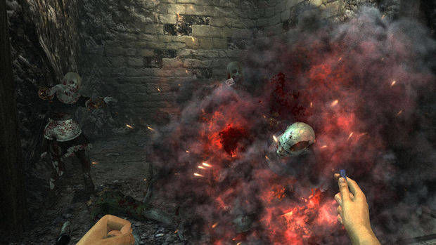 Detto questo, sappiate che la taratura del sensore si comporta in maniera egregia sia se giocate alla luce del sole che all’oscurità ma è forse in questo senso che Kinect si dimostra essere l’ottima periferica che tutti noi abbiamo comprato. Fra le mosse campionate ci sono l’uso delle braccia e delle gambe per colpire i nemici, l’uso della mano per interagire con oggetti e armi, l’uso del busto per muovere la visuale e se ci si accascia, ovviamente il personaggio a schermo si abbassa – utile anche durante i combattimenti. La difesa negli scontri, avviene tenendo le braccia incrociate e, in ultimo, portare avanti la gamba serve per camminare negli stage – da sottolineare per chi pensava che il gioco fosse su binari. Per quanto riguarda i combattimenti invece, devo ammettere che i colpi sferrati non saranno mai precisi al 100% nella zona del corpo scelta ma questo è un fattore davvero irrilevante che non mina l’esperienza del giocatore. L’unica cosa che manca per davvero sono gli spostamenti veloci laterali che avrebbero potuto dare quel senso di dinamicità in più durante gli scontri multipli che ovviamente non ci sono di modo da favorire il giocatore. Non preoccupatevi quando vedrete più creature in contemporanea che tanto gli attacchi arrivano uno ad uno. Scelta da considerare positiva o negativa a seconda dei gusti, realizzata per favorire chi magari non ha ancora dimestichezza dei giochi dove non si deve tenere un Pad in mano.