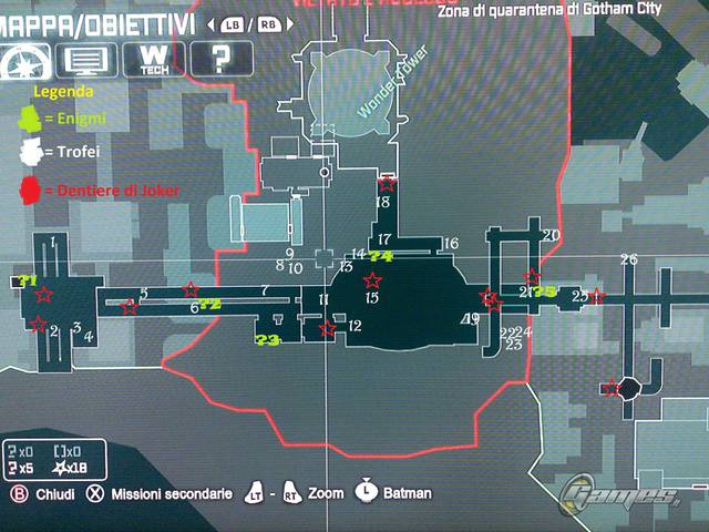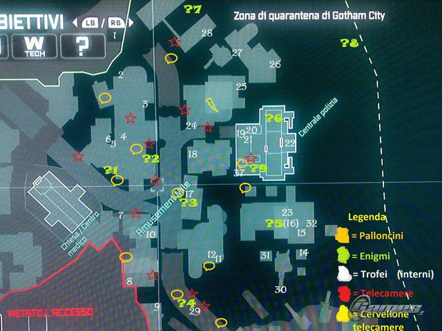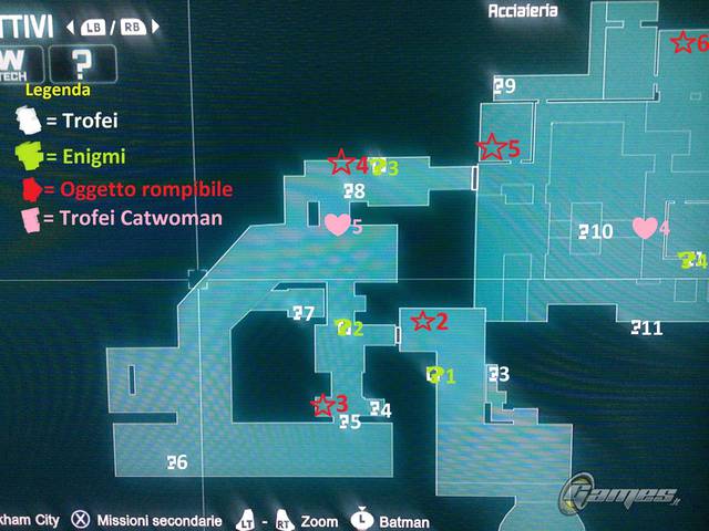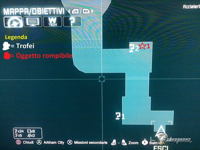 Alcuni trofei vi sembreranno invece non esserci davvero, ma solo perché sono situati DENTRO ai piccoli edifici in cui incontrerete i Villains delle missioni secondarie, ad esempio la Fabbrica di giocattoli dove si è rintanato Bane.