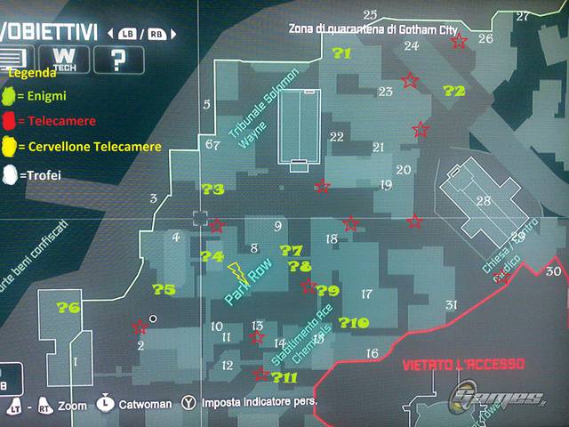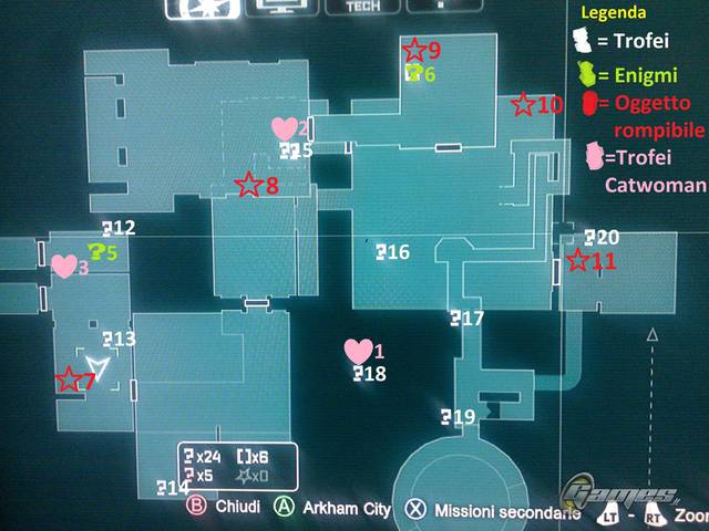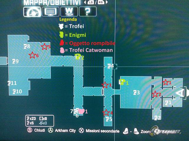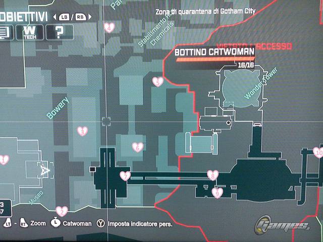 A volte vi ritroverete a dire “Ma dove diavolo è questo trofeo? Sono sopra il punto della mappa e non lo vedo???” semplicemente perché moltissimi trofei di Catwoman sono agganciati ad una parete e spesso in luoghi davvero improbabili dove solo le doti acrobatiche di Catwoman possono arrivare. Non lasciate niente al caso quindi, guardate sopra e sotto ogni luogo prima di perdervi in un tripudio di imprecazioni.