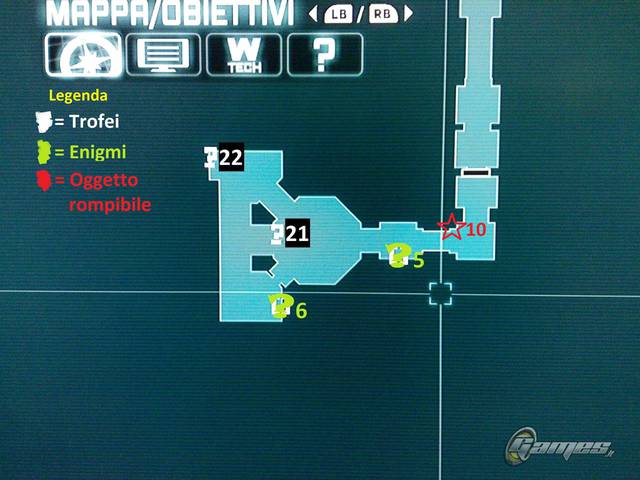 Trofeo Enigmista 11: Usate il decriptatore per aprire la porta blindata che vi separa dal trofeo. Una volta aperto troverete il trofeo sul soffitto.