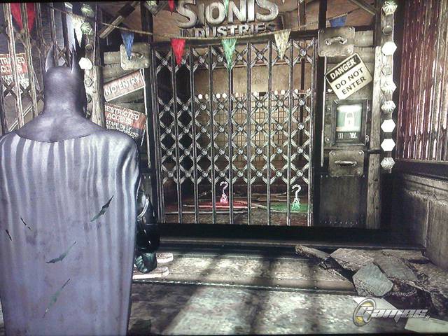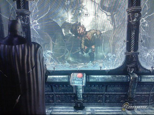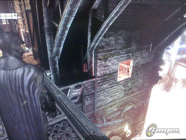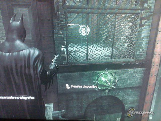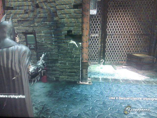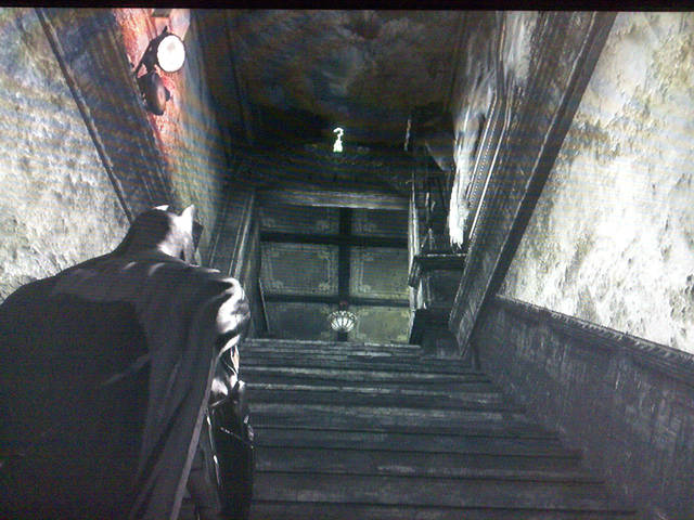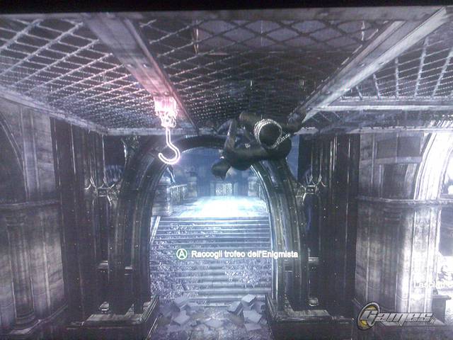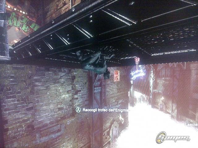 Trofeo enigmista 3: Per aprire la cella in cui è chiuso questo trofeo, dovrete tornare all’entrata della Stazione di Polizia ( sulle scale di ferro vicino al primo trofeo ). Una volta sulle scale guardate in alto, verso il corridoio, così da notare dei fili scoperti che generano elettricità. Usate il Batarang telecomandato e elettrificatelo attraverso i fili scoperti poi guidatelo fino alla cella del trofeo e, passando dall’angolo mostrato in foto, fatelo schiantare sulla scatola dei fusibili che andando in corto vi darà accesso alla cella.
