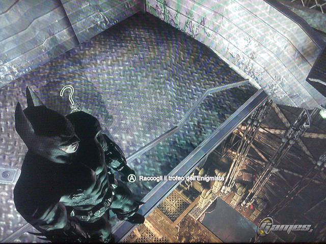 Trofeo Enigmista 11: Usate il bat-rampino per aprire il portello sul muro, ora usatelo nuovamente per raccogliere il trofeo.