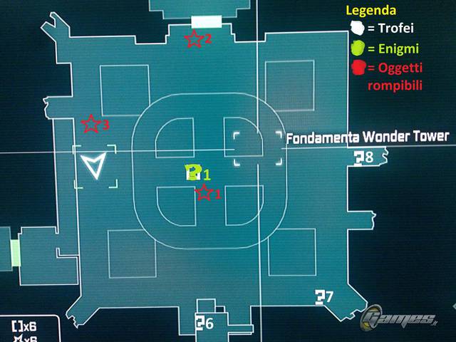 Trofeo Enigmista 21: Per aprire la cupola in cui è situato dovrete salire sui 3 pulsanti con il punto interrogativo senza mai toccare terra, usate il lancia-cavo è il compito sarà più che semplice.