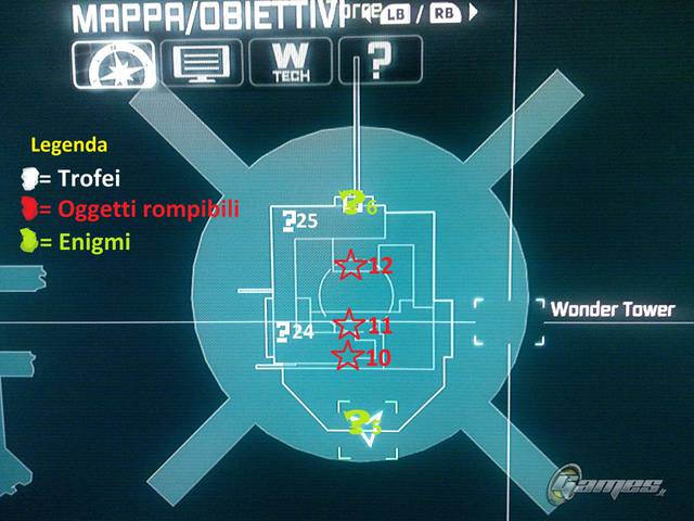 Trofeo 25: Vi sono 3 interruttori posizionati su 3 torri, dovrete schiacciarli tutti e 3 senza mai atterrare, vi basterà quindi partire dalla torre più bassa e planare contro il primo, darvi la spinta dal muro e continuare a volare, usare il rampino potenziato sulla cima di una delle 3 torri per ricevere una nuova spinta e planare sul secondo. In pratica dovrete schiacciare tutti e 3 gli interruttori cercando di mantenervi sempre in volo, vedrete che sarà più semplice farlo che leggerlo.