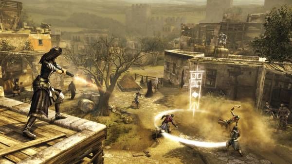 Obiettivo non particolarmente complesso. Seguiamo Yusuf, lanciamo la bomba dove il segnale ci indica e raggiunti i tetti aspettiamo che gli Assassini compiano il loro compito. Fatto questo lanciamoci sulla fune tesa ed uccidiamo al volo il nemico sul tetto che controlla il punto in cui Yusuf ha lanciato la bomba. Fatto questo torniamo da Yusuf ed individuiamo il capitano del covo usando l’occhio di Aquila. Fatto questo andiamo a sinistra, saltiamo la strada ed eliminiamo silenziosamente la guardia sopra il tetto. Eliminato l’uomo, guardiamo sotto di noi, agganciamo il capitano ed eseguiamo un assassinio al volo. Fatto questo, non ci resta che salire in cima alla torre e accendere il fuoco di segnalazione senza farci notare dagli altri nemici.