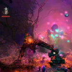 In qualsiasi momento è possibile passare dal Mago al Guerriero o alla Ladra di modo da sbloccare percorsi, combattere o saltare qualche fossato. Trine 2 mischia infatti sequenze di combattimento con altre dove bisognerà usare il cervello. Come dicevo poco sopra, ognuno dei tre personaggi è dotato della sua particolarità di modo da rendere più variegato il gameplay. Il Guerriero sarà la forza bruta del gruppo, capace di sferrare micidiali fendenti di spada oppure di difendersi con lo scudo dagli attacchi dei nemici. La Ladra è quella agile, dotata di arco per la difesa a distanza e di un rampino che le consente di superare enormi baratri o di agganciarsi praticamente ovunque voglia elevarsi. Per ultimo abbiamo il Mago che grazie alla forza di volontà può spostare oggetti o creare delle scatole utili a risolvere determinati enigmi. Se il tutto può sembrare abbastanza facile, sappiate che progredendo nel gioco ci si imbatte in situazioni pazzesche dove vi verrà chiesto di combattere contro vari nemici, stare attenti a varie trappole, difendersi e risolvere parecchi grattacapi anche in contemporanea. Ognuno dei tre Eroi avrà una sua forza vitale che però non è infinita, state dunque attenti a comandare bene uno o l’altro personaggio visto che si può anche morire. Non spaventatevi però, come in ogni co-op che si rispetti, fintanto che non muoiono tutti e tre i personaggi, non vedrete nessun game over. Abbiamo poi la parte Platform del gioco che abilità nel movimento per il raccoglimento di alcuni globi di luce che permettono di migliorare le prestazioni dei vari personaggi: non si tratta di sezioni GDR vere e proprie ma qualcosa di assolutamente semplificato. In ultimo, sappiate che gli schemi sono ricchi di portali, porte magicamente chiuse, anfratti segreti da scoprire, caverne nascoste e via di questo passo che aumentano notevolmente la longevità del gioco – che non è cosi elevata come mi aspettavo. I giocatori più esperti lo termineranno senza troppi problemi in mezzo pomeriggio.