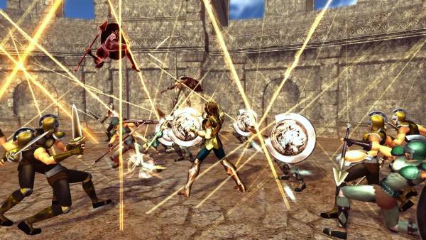 Come ogni gioco caratterizzato da un gameplay in stile musou, dovremo fare in modo che il nostro personaggio sgomIti tra una folla di nemici, con il supporto di soli due attacchi: uno leggero e veloce e l’atro lento ma potente. In una situazione davvero caotica ci ritroveremo a tirare calci e pugni a chiunque ci capiti sotto tiro, senza mai poter agganciare un bersaglio preciso. Dimenticate pure di cimentarvi in combo spettacolari e preparatevi a sostituire i tasti quadrato e triangolo del vostro pad! Una scelta questa, probabilmente legata agli eventi della serie animata in cui i Cavalieri in un solo colpo riuscivano ad atterrare decine e decine di soldati nemici. In nostro aiuto, inoltre, durante i combattimenti ci sarà il Cosmo, l’energia interiore che alimenta i poteri dei Cavalieri. Ad indicare il Cosmo del nostro personaggio sarà una barra che si caricherà sia infliggendo danni ai nemici che subendoli. L’energia acquisita ci sarà utile per lanciare dei colpi speciali o per attivare il Settimo Senso che ci permetterà di rallentare il tempo per alcuni secondi, guadagnando vantaggio sul nemico. Come se non bastasse, poi, gli sviluppatori hanno inserito un’auto rigenerazione sia della vita che dell’energia del Cosmo. Disutibile l’utilità di queste implementazioni, considerato che l’intelligenza artificiale e la varietà dei nemici è davvero pessima. Dopo qualche ora rischieremo seriamente di annoiarci trovandoci alle prese con battaglie sin troppo semplici. Le cose cambiano un po’ quando ci ritroveremo faccia a faccia con i Cavalieri d’Oro. Estremamente dannosi a ogni livello di difficoltà, attaccarli è decisamente complicato sopratutto quando si teletrasportano da un punto all’altro del terreno di scontro.