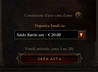 La casa d’aste di Diablo 3 non prevede una tariffa d’inserzione per il venditore all’inizio di un’asta. Tuttavia, ogni venditore potrà avere un numero limitato di aste attive nello stesso momento. Quando un’asta giunge al termine, si libererà un nuovo slot per mettere in vendita un altro oggetto.