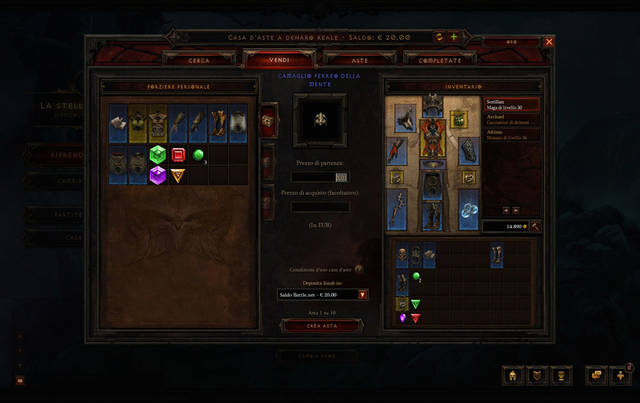 L’opzione di ricerca intelligente analizzerà il personaggio e creerà automaticamente una lista di oggetti consigliati, pensata specificamente per il personaggio prescelto, con le statistiche degli oggetti, l’ultima offerta, il prezzo di acquisto e il tempo restante per l’asta. E’ inoltre possibile restringere la ricerca specificando la tipologia di oggetto e una serie di criteri di preferenza, così come è possibile cercare un oggetto in particolare, come la potente Ascia di Arreat, inserendo il nome nell’apposito campo in fondo alla pagina.
