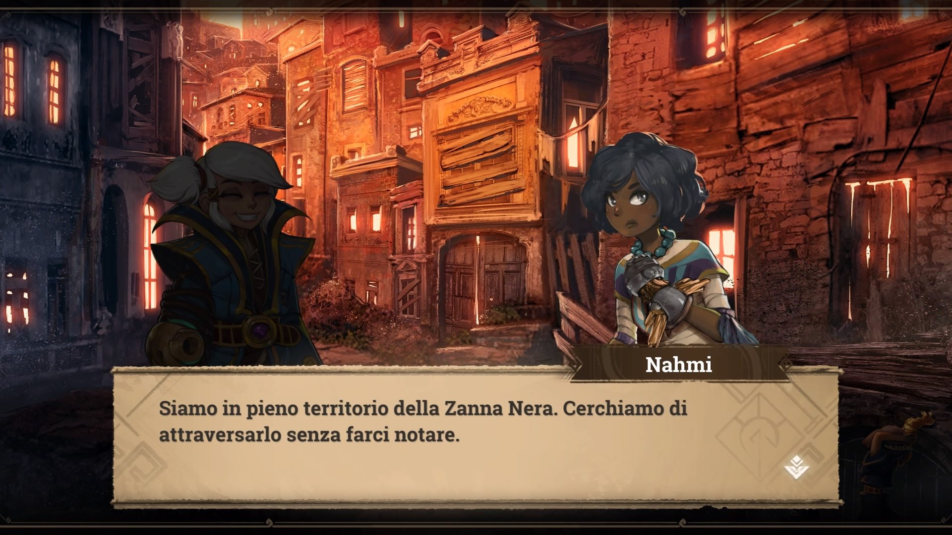 Nahmi è un’orfana dall’atteggiamento spensierato ed è la migliore ladra della città nota col nome di Fiamma d’ebano. Armata di pugnale Zodiarc mette sempre avanti il bene della Famiglia prima di ogni cosa.