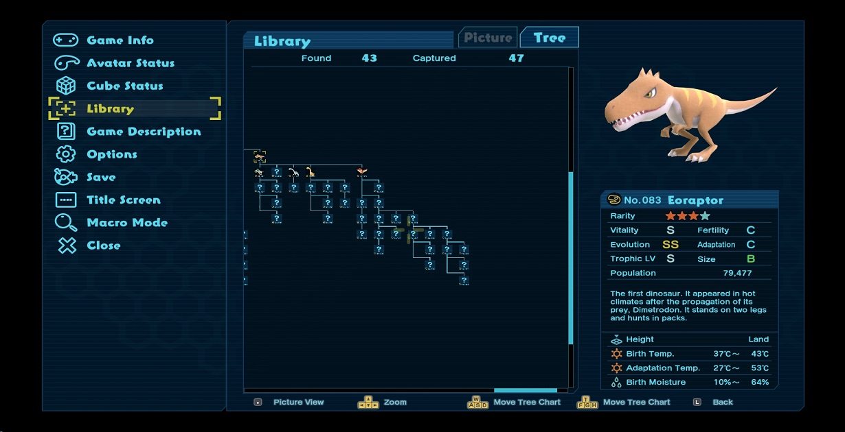 Per sapere quali animali avete scoperto o quale linea evolutiva fa più per voi, il gioco dispone di un albero genealogico che vi aiuterà a decidere cosa fare.