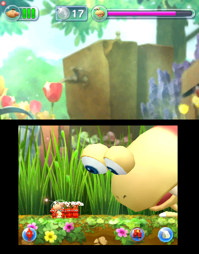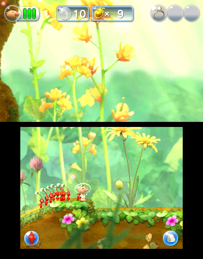 per un approccio platform bidimensionale con grafiche 3D, trovando la sua forza nell’utilizzo del touch screen: Mentre Olimar sarà controllabile con l’analogico (o con i pulsati ABXY per i mancini), i Pikmin potranno essere lanciati e richiamati utilizzando lo stilo sul touch screen.