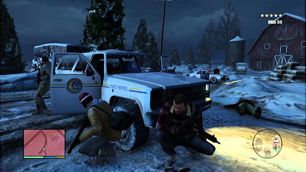 Tre personaggi completamente differenti per abitudini e carattere, ma perfettamente compatibili quando si tratta di mettere la mani su un grosso bottino. Michael è un ex rapinatore, ritiratosi per godersi la sua ricca pensione; Franklin è il classico ragazzo del ghetto in cerca del colpo grosso, inizialmente impiegato come addetto al “recupero crediti” di una concessionaria di auto che fa della truffa il suo mestiere; infine abbiamo Trevor, la personalità famelica, folle e senza regole del gruppo. Ex migliore amico di Michael, vive nel deserto alle porte di Los Santos con l’intento di far crescere il suo mercato di metamfetamine e armi di contrabbando. Per una serie di curiose coincidenze che non stiamo certo a raccontarvi, i tre si troveranno presto a lavorare insieme e costretti a sopravvivere in una situazione più grande di loro. Rapporto che è ben narrato e gestito da una sceneggiatura matura in grado di toccare temi attuali e particolarmente forti con la giusta dovizia, senza esagerare.