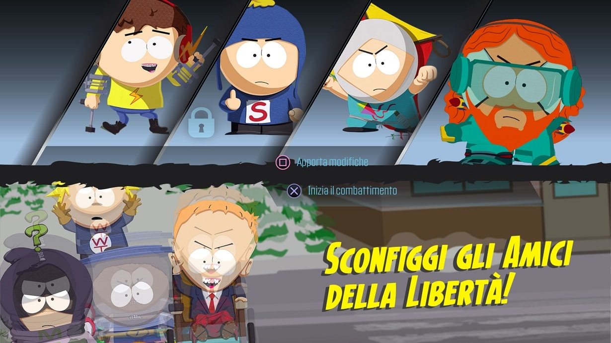 Le battute finali de Il Bastone della Verità ci avevano lasciato in una città devastata da un conflitto tra fazioni di impavidi guerrieri. L’ago della bilancia dello scontro era stato, manco a dirlo, il “nuovo arrivato“, il bambino recentemente trasferitosi con la famiglia a South Park, che il giocatore si sarebbe trovato ad impersonare. Proprio al culmine del conflitto, Eric Cartman pone la parole fine alla guerra come solo lui sa fare, dicendo che il fantasy è oramai fuori moda, e che è giunta l’ora degli eroi. Riponendo in fretta e furia elmi, scudi, spade e cappelli da mago, i bambini più famosi del piccolo schermo si infilano in striminziti quanto improbabili costumi da supereroi. Tuttavia, anche questo nuova “mania” non sarà esente da conflitti e da avventure a metà strada tra realtà e fantasia. Perché South Park ha tanti nemici, ed ha un disperato bisogno di un giustiziere mascherato, o, perché no, dei suoi Avengers.