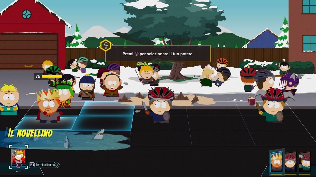 Nonostante il fantasy non sia più di moda, South Park: Scontri Di-Retti presenta un approccio RPG ancora più puro rispetto a Il Bastone della Verità. Non solo è stato conservato il combattimento a turni, ma è stato implementato con un Combat Grid, in modo da garantire un approccio più ragionato e strategico. Il nostro team di gioco sarà composto da quattro eroi, ognuno con le proprie abilità e la propria funzione. Trovare il giusto mix tra personaggi da corpo a corpo, eroi di supporto e guaritori rappresenterà la chiave per la vittoria.