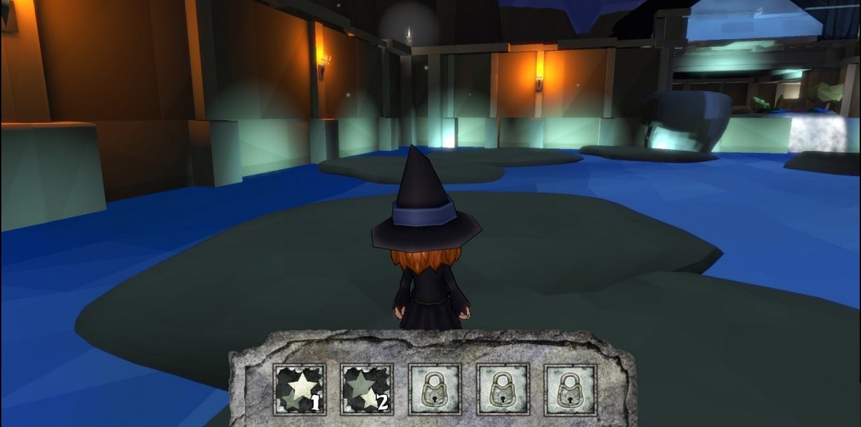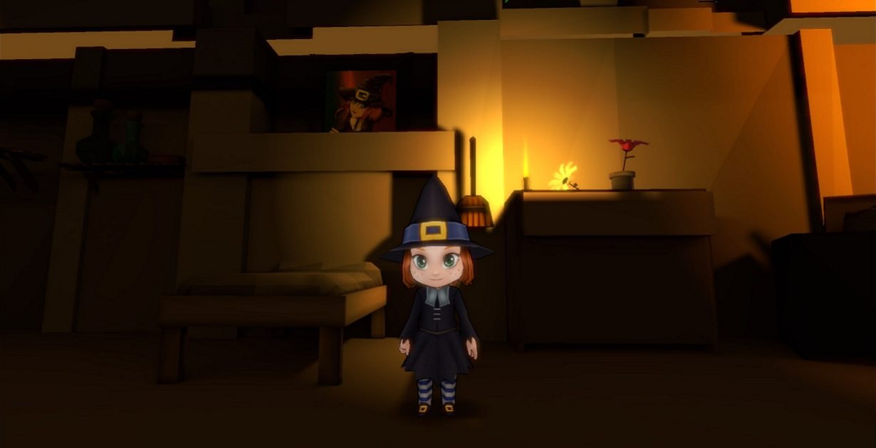 Il gioco si pone obiettivi: raccogliere i fiori (non necessariamente, in realtà) e liberare le altre Sorgina dalla maledizione che le ha tramutate in goblin. Gli schemi del gioco sono abbastanza ripetitivi, a dire il vero, ma gli enigmi sono sempre freschi e di facile soluzione, in più, la musica aiuta molto ad instaurare un legame emotivo tra il giocatore, la protagonista e l’ambiente circostante. Parlando dell’ambiente circostante, la grafica non è granché. Ricorda moltissimo i primi capitoli di Harry Potter per PS1. L’illuminazione è ottima, ma il paesaggio, gli oggetti e gli edifici sono abbastanza spogli. Come se mancassero di profondità, eppure i poligoni si vedono benissimo. Aggiungo uno screen come esempio della povertà degli spazi.