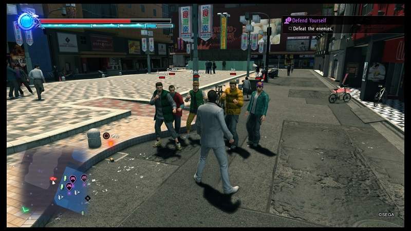 Il gameplay di base di Yakuza Kiwami 2 è strutturato su combattimenti in serie contro gruppi di nemici e contro i boss. Kiryu si può avvalere di attacchi leggeri e pesanti con al pressione dei tasti quadrato e triangolo. Tenendo premuto quadrato, Kiryu caricherà un attacco più potente che avrà l’affetto di stordire l’avversario, mentre con il tasto cerchio si effettuano le prese. Immancabile, ovviamente, la barra dell’Heat, una furia che rende Kiryu una vera e propria bestia. Questo stato può essere attivato con R2, quando la barra azzurra è piena. In taluni casi, la modalità heat può essere utile per togliere una buona parte dell’energia del nemico quando su schermo appare il tasto triangolo avvolto da un’aura azzurra.