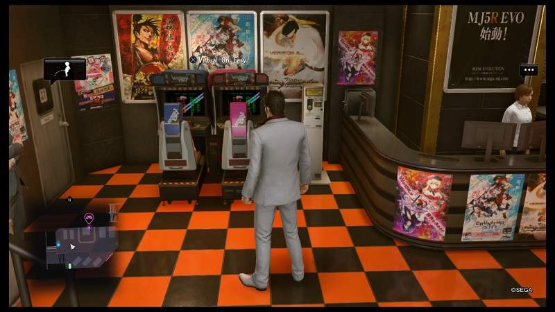 Quest’ultimi possono diventare una vera e propria droga, tanto da farci dimenticare di proseguire la missione principale. Possiamo giocare ai cabinati Sega tra cui spiccano il picchiaduro Virtua Fighter e l’action con i mecha Virtual-on. Un’altra attività tipica della serie è l’ufo catcher, con cui potete divertirvi a prendere giocattoli con il braccio meccanico. Altri minigames che attenteranno alla vita sociale di Kiryu sono il karaoke, in cui dovrete premere i tasti su schermo per avere un alto gradimento del pubblico, il mahjong, un’attività a cui noi occidentali non siamo soliti prendere parte, il toylets, un gioco malatissimo in cui dovremo fare battaglie virtuali di pipì… sì, avete letto bene, le freccette e, perché no, la visione di video hard (ovviamente si tratta di video soft con graziose donzelle).