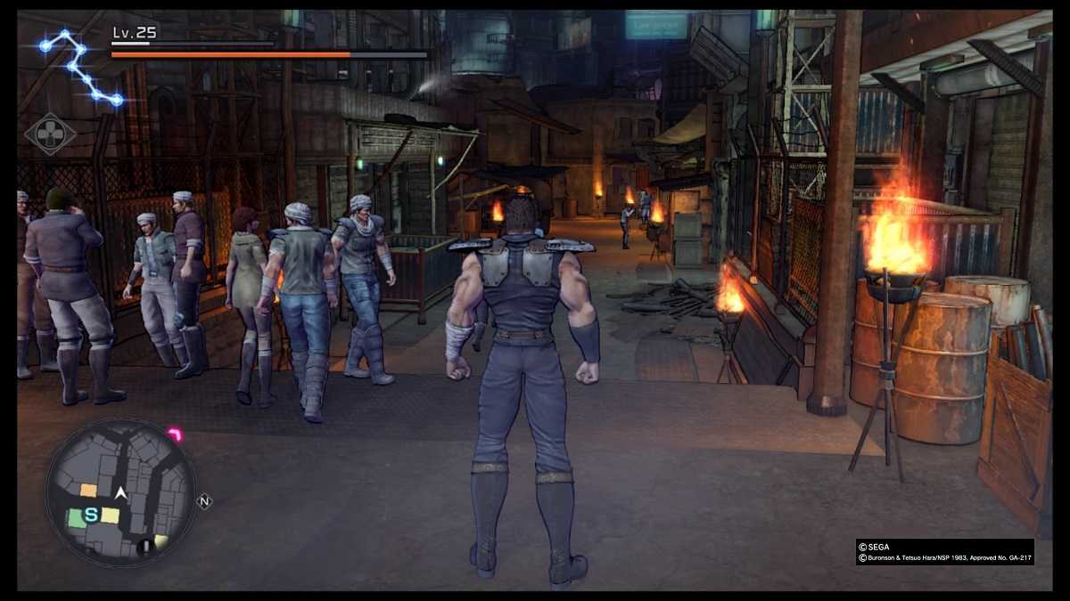 Il gameplay di Fist of the North Star: Lost Paradise ha molte meccaniche in comune con quelle di Yakuza, cosa che non rappresenta affatto un problema, anzi. Muoviamo i nostri passi nella città di Eden, liberamente esplorabile, intenti a risolvere missioni principali e non a suon di pugni. Il combat system è stato rivisto per immergere il giocatore pienamente nell’universo narrativo di Ken il Guerriero. Attacchi “leggeri” e pesanti rimangono la base, mentre con il tasto cerchio non si effettua la consueta presa, ma si dà inizio alla meccanica di combattimento più bella da vedere, più divertente e, ovviamente, più in linea con il contesto: le tecniche di Hokuto Shinken.
