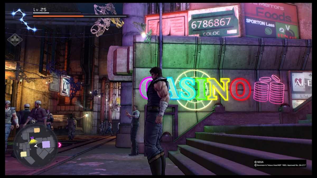 Come abbiamo accennato poco fa, l’atmosfera generale è meno cupa e così anche i compiti secondari di riflesso lo sono. Potremo distrarci diventando bounty killer, cioè eliminando la feccia più pericolosa della città – è anche il modo più veloce per fare soldi – oppure lavorando come bartender con tanto di minigioco alcolico. Anche in Lost Paradise torna il Casino e, come in Yakuza, potremo gestirlo. Insomma, vedremo un Kenshiro vestire panni che mai avremo immaginato su di lui. Nel gioco sono presenti anche ottanta substories che aumentano di molto la longevità del gioco. Non siamo ai livelli di Yakuza, ma per la quest principale ci vorranno comunque almeno 15 ore di gioco, tempo che aumenta anche a 20/25 con le missioni secondarie.