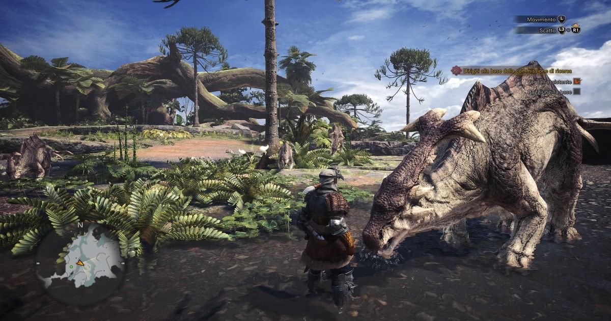 La trama di Monster Hunter: World può essere riassunta in queste righe che avete appena letto. Nonostante Capcom abbia comunque effettuato un lavoro egregio, completo di doppiaggi in italiano (e forse carente solo di un lipsync non sempre preciso), lo story mode consiste, come molti avranno capito, in un semplice elenco di missioni principali e secondarie, nient’altro che un espediente per farci tuffare a capofitto in quello che è il vero cuore pulsante del gioco: il gameplay.