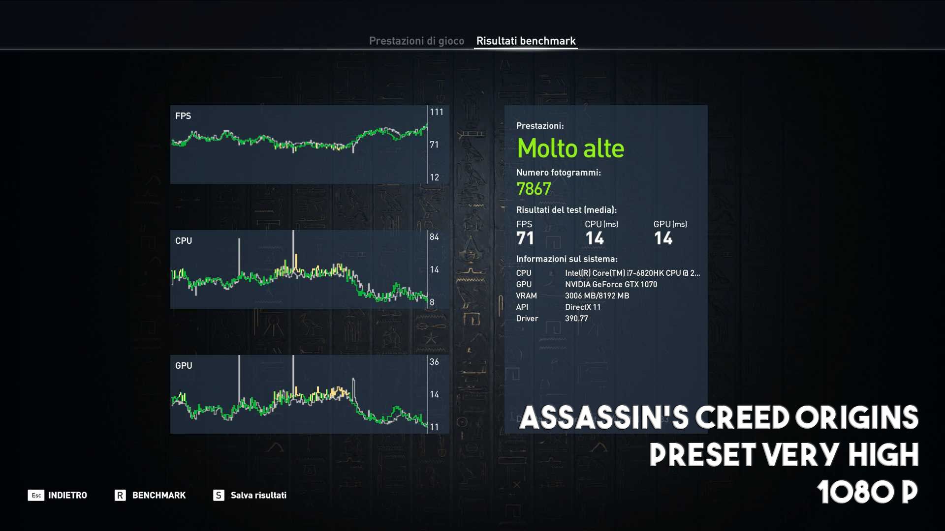I benchmark mostrano come, a 1080p, la 1070 riesce agilmente a portarsi via 60 fps e più nei vari titoli provati. Per i prossimi due anni la scheda video sarà in grado di far girare con tranquillità a prestazioni ultra/alto tutti i videogiochi in uscita.