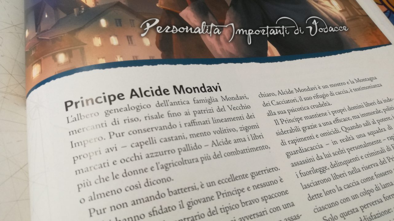 Poi ci sono una decina di personalità di Vodacce descritti nel dettaglio, dalle loro storie pregresse, i loro obiettivi, ed infine degli utili consigli su come interpretarli e su come inserirli all’interno delle storie come alleati o nemici dei PG che siano. A seguire poi le società segrete, tra approfondimenti di quelle esistenti ed i legami delle stesse con Vodacce fino alcune anche inedite.