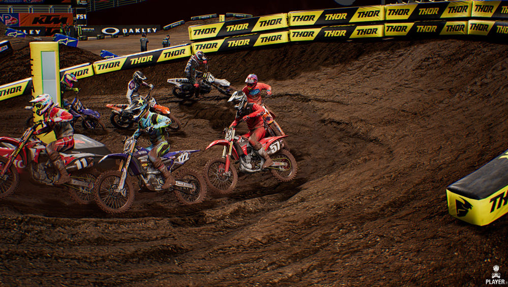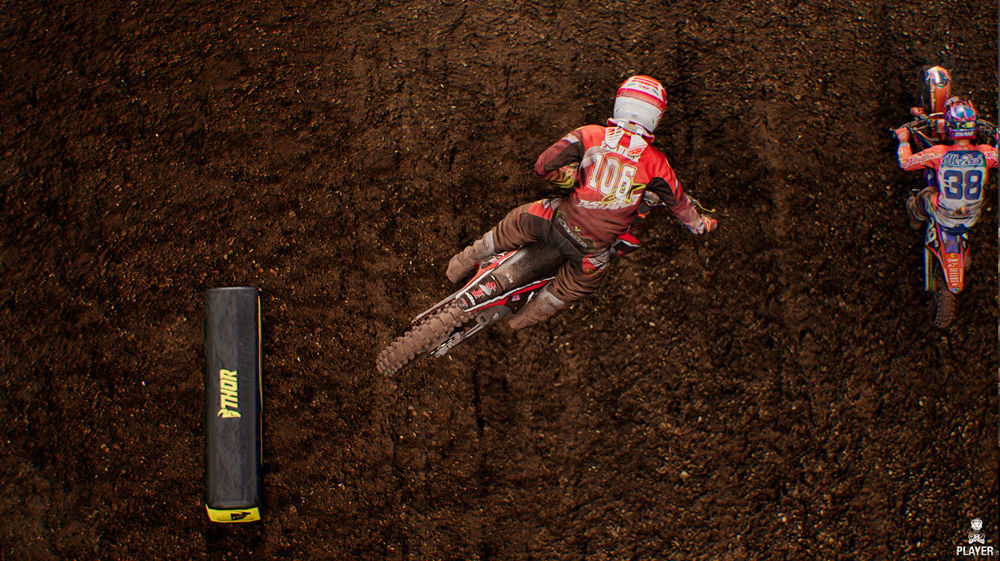 Il gioco al primo avvio ci catapulta nel primo dei tanti tracciati disponibili facendoci affrontare una prima gara con giusto una piccola lista di tasti sul lato destro dello schermo. Già dalla prima curva si vive la calca e l’adrenalina tipica del mondo del Supercross accompagnata da una serie di sgomitate con conseguenti cadute, il vero tutorial consisterà in una serie di tips&tricks da leggere nell’apposita sezione. Dopo la prima gara potremo finalmente personalizzare il nostro pilota, nulla di eclatante (poche facce preimpostate) ma la possibilità di scegliere nome, altezza, nazionalità, nickname e numero aiutano sicuramente ad immergerci in questo titolo.