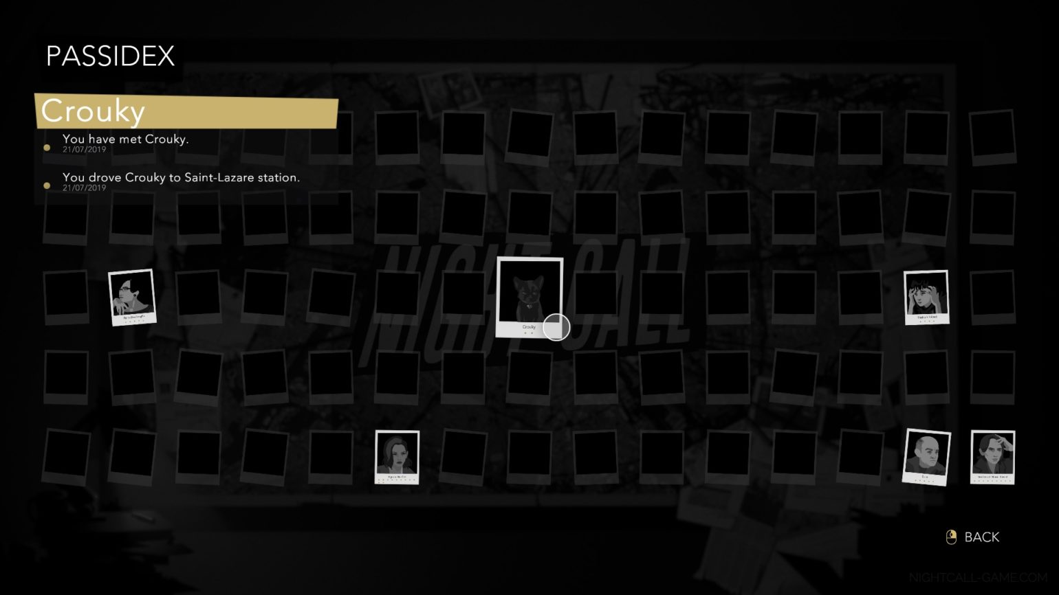 Come avrete intuito in Night Call il ruolo del giocatore è quello del tassista che notte dopo notte dovrà scegliere dalla mappa di Parigi quale passeggero raccogliere per portare a destinazione. Durante il tragitto, il giocatore potrà interagire con il passeggero attraverso dei dialoghi, che a volte vanno innescati proprio dal tassista, per arrivare a raccogliere frammenti di indizi sul caso seguito. Alla fine di ogni notte, si potrà tracciare una mappa concettuale dei risultati grazie alla lavagnetta a casa del tassista arricchita di foto e collegamenti con fili, appunti e puntine proprio come nelle migliori delle indagini.