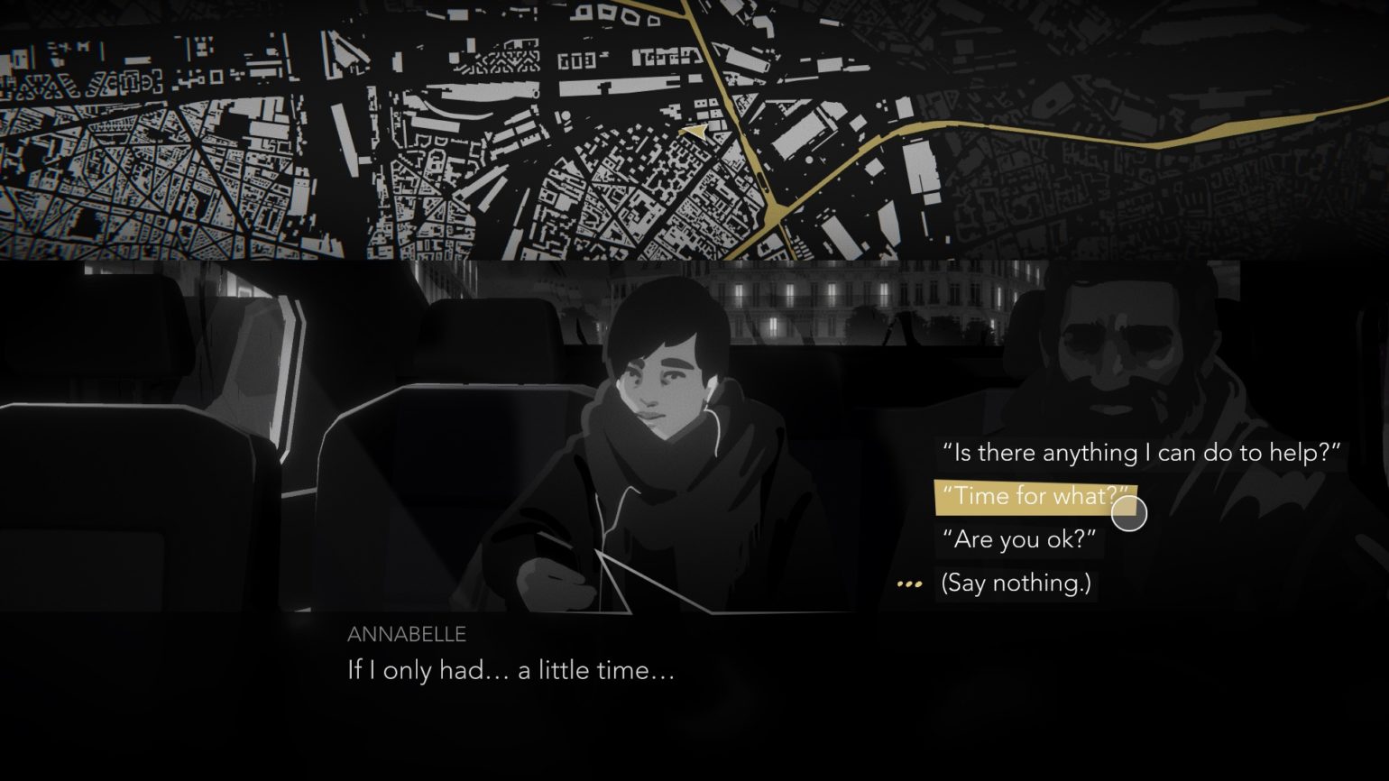 La trama è basilare eppure estremamente affascinante, in grado di lasciare il giocatore nel mistero più totale, ma senza togliergli mai il gusto per la scoperta. Il tassista/giocatore è quasi una presenza silenziosa nella vita delle persone che raccoglie e accompagna. Per molti è un buon ascoltatore, per altri una spalla su cui piangere e per altri ancora qualcuno con cui sfogare ansie e stress della giornata. Un confessore condiviso da tutta la città che però è ignara di rivelare i suoi segreti alla stessa persona. Forse è proprio per questo che il tassista risulta uno dei migliori investigatori di sempre, ma l’arduo compito di trovare la verità tra le parole dei passeggeri e soprattutto di riordinarla, spetta al giocatore. E spesso, se non si presta attenzione anche al più piccolo particolare, la soluzione del caso potrebbe rimanere persa per sempre tra le strade della Ville Lumiere.