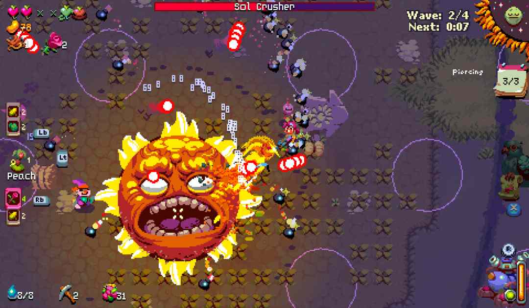 Con un po’ di fortuna nei drop dei nemici, le giuste scelte in fatto di potenziamenti ed una strategia adeguata nello spendere i nostri risparmi, riusciremo in breve tempo a diventare degli incredibili agricoltori e combattenti. Ovviamente il tutto dev’essere accompagnato da una sana dose di riflessi e molta calma nel cercare di schivare i vari proiettili, che spesso a causa di qualche problema tecnico di collisione riusciranno ugualmente a colpirci.