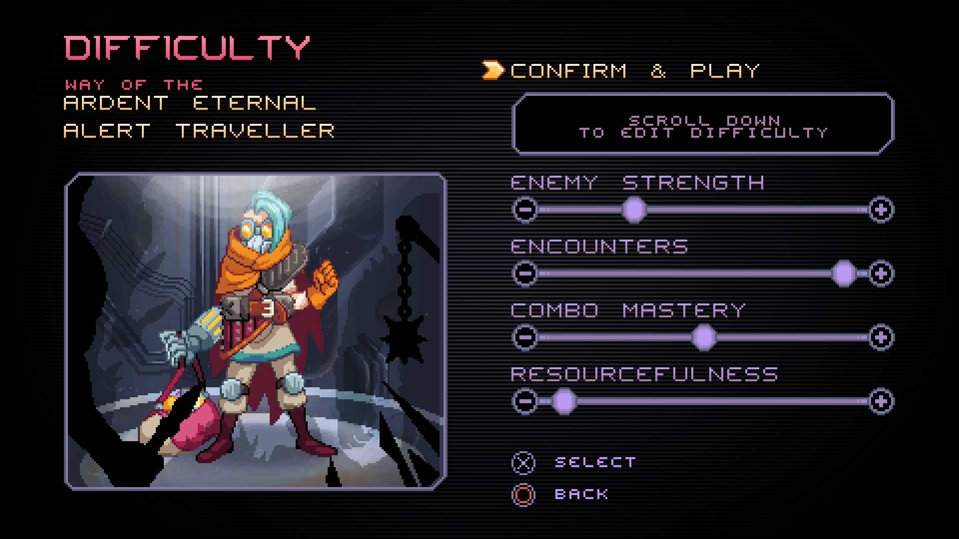 Con le impostazioni standard il gioco offre un ottimo livello di sfida, ma questo può essere modificato in ogni momento in base alle proprie esigenze, settando addirittura dei parametri diversi tra loro come la forza del nemico, la precisione richiesta per le combo e così via. Contribuiscono a rendere difficile la vita al giocatore (ma non in senso negativo) i checkpoint da attivare manualmente e una salute ripristinabile solo per mezzo di alcuni oggetti da trovare.
