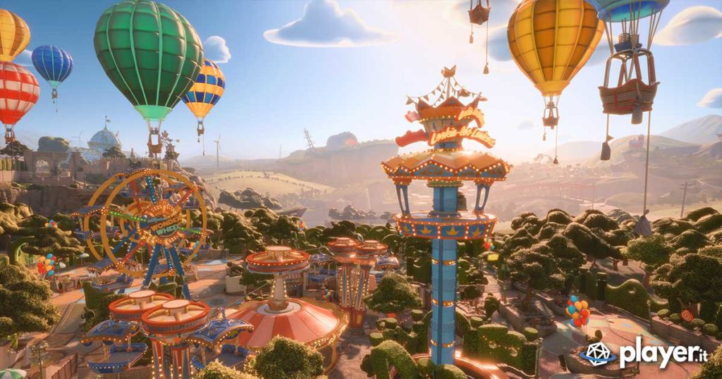 La metafora appena usata del parco divertimenti non potrebbe essere più calzante come in questo caso: PopCap Games estende al massimo il concetto di hub e ne La Battaglia di Neighborville inserisce un vero e proprio parco giochi chiamato Divertilandia. Questa zona è un’area condivisa dell’hub di gioco in cui le 2 fazioni possono dare sfogo alla loro voglia di distruzione senza regolamenti, modalità, obiettivi da raggiungere ecc.