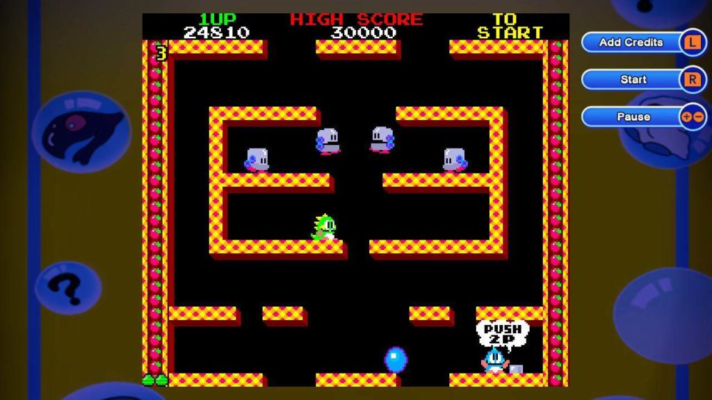 Mentre i nostalgici potranno sempre darsele di santa ragione sfruttando il primo Bubble Bobble, disponibile fin da subito all’interno del menù principale del gioco, gli altri giocatori potranno dilettarsi con un Bubble Bobble che sembra identico a ciò che si conosce cono variazioni sul tema. L’emulazione dell’originale è particolarmente ben fatto, con tanto di rallentamenti dovuti al lag e con un multiplayer ancorato ai due giocatori (esattamente come nel capitolo originale della saga).