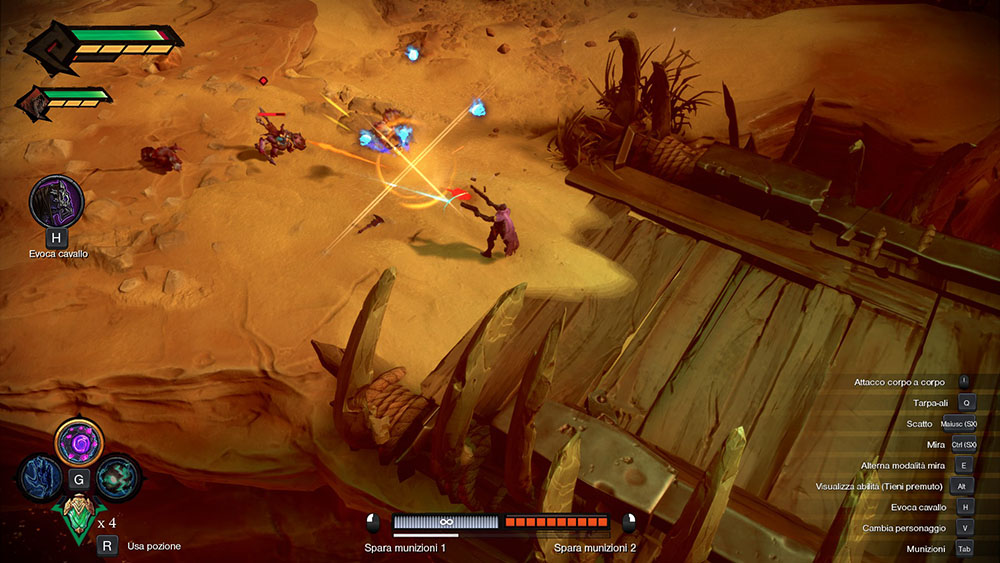 E’ inutile mentire, sin dal primo Darksiders abbiamo tutti pensato che il fantastico character design della serie gridasse Blizzard Entertainment da ogni modello 3D, ed effettivamente il pensiero è subito volato a Diablo dopo aver visto il trailer di Genesis, ma ci siamo subito ricreduti. Come è ben risaputo ogni titolo del franchise ha esplorato una tipologia diversa di gameplay per adattarsi al meglio allo stile di ogni cavaliere, quindi quale migliore occasione per proporre un Hack ‘n’ Slash isometrico per esprimere al meglio le due pistole di Conflitto? Come detto prima questa scelta aveva fatto nascere qualche dubbio ma una volta provato mi sono trovato tra le mani un titolo che è quanto più Darksiders ci si possa aspettare: brutali combattimenti alternati da fasi di esplorazione, puzzle e platform.