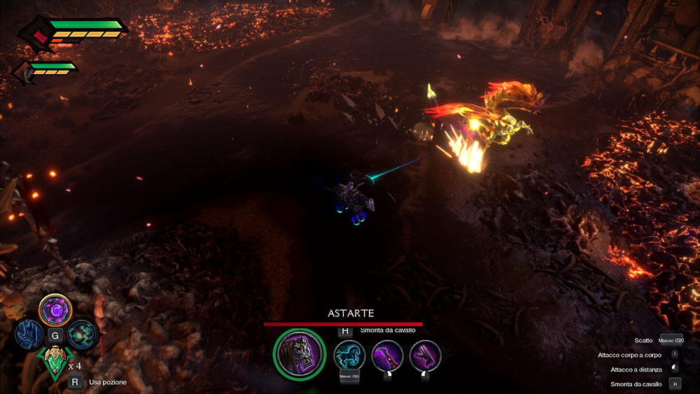 Ogni livello di Darksiders Genesis si sviluppa spesso su grosse mappe esplorabili sviluppate su più piani. Attraverso l’esplorazione potremo raccogliere non solo le anime ma anche le monete del traghettatore utili per i diversi acquisti da Vulgrim durante la nostra avventura. A renderci il compito più facile è sicuramente la possibilità di muoversi sul nostro fidato destriero che in molti casi diventerà anche parte integrante dei combattimenti. I diversi segreti e tesori nascosti in ogni mappa implicano una certa dose di backtracking per trovarli tutti e nel mentre potenziare i propri nuclei.