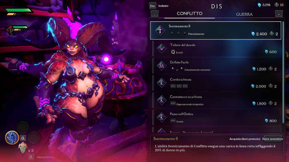 Partiamo dal primo aspetto, i combattimenti, come da tradizione nessun nemico verrà risparmiato dall’ira dei cavalieri. Come detto prima avremo modo di intercambiare Guerra e Conflitto a seconda delle nostre esigenze: Guerra con il suo spadone è perfetto per chi vuole buttarsi nella mischia falciando senza pietà i propri nemici o per accorciare le distanze con un nemico particolarmente schivo, Conflitto invece è per chi preferisce maggiore crowd control sui nemici (tipo il sottoscritto) e tenere a distanza i boss particolarmente ostici. Naturalmente non possono mancare abilità e potenziamenti di ogni tipo grazie anche all’introduzione dei Nuclei. Questi oggetti hanno una probabilità di essere rilasciati dai mostri una volta sconfitti e grazie all’apposita schermata potremo creare la nostra build personalizzata inserendo i nuclei raccolti nei diversi spazi, raccogliere più nuclei della stessa creatura ne potenzierà gli effetti.